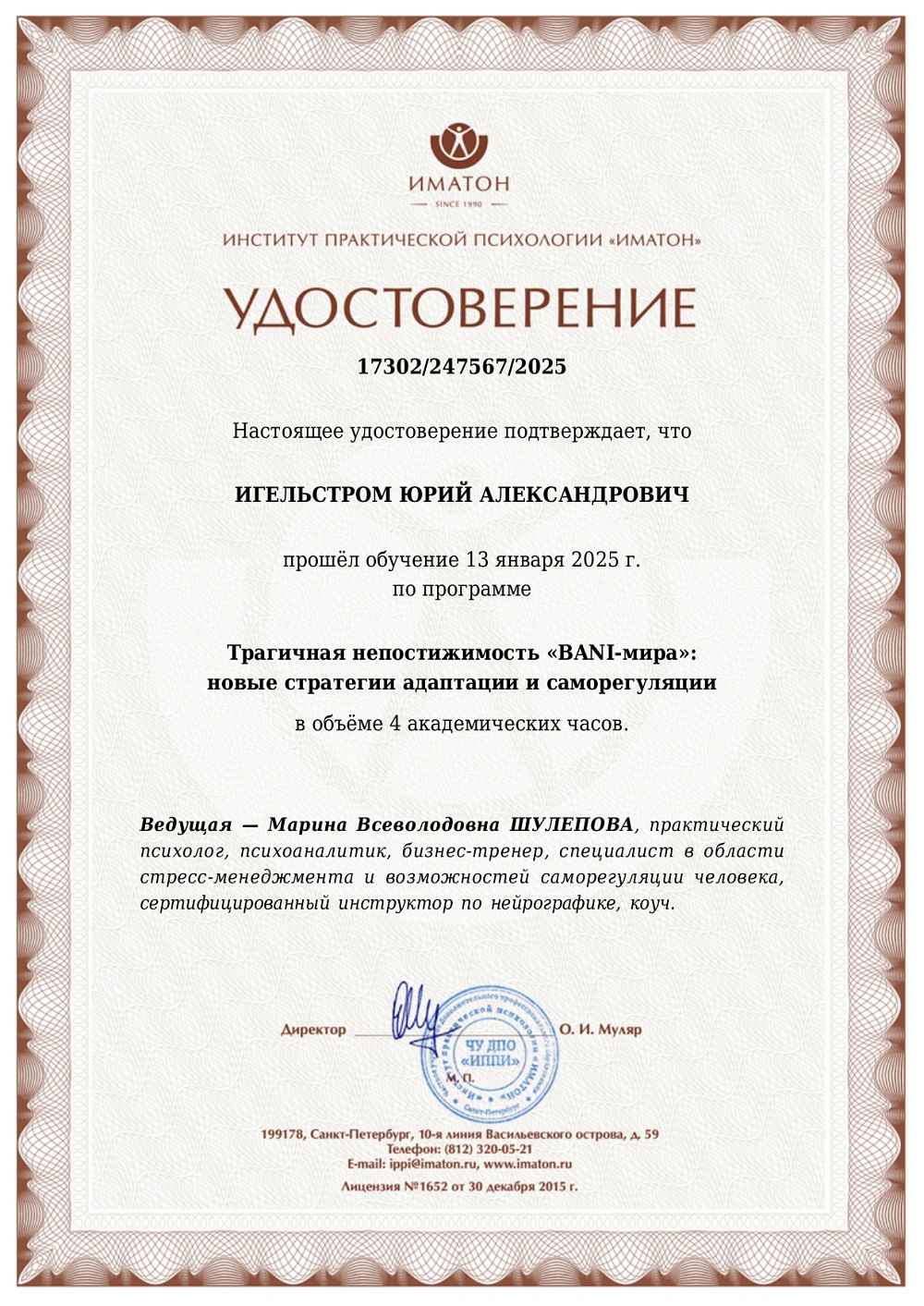 Наша деятельность лицензирована министерством обазования и науки по Челябинской области. По итогам обучения выдается свидетельство о дополнительном образовании или диплом о профессиональной переподготовке.