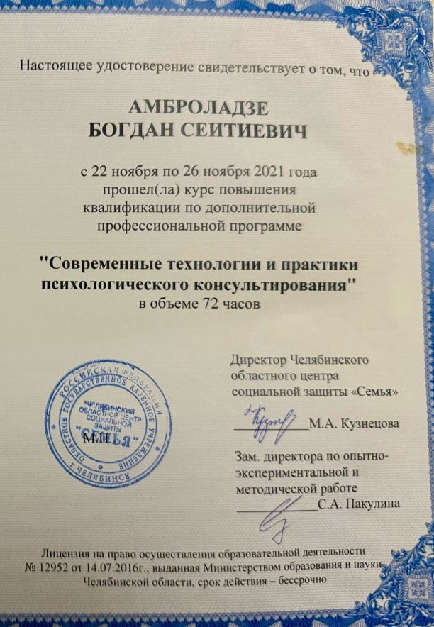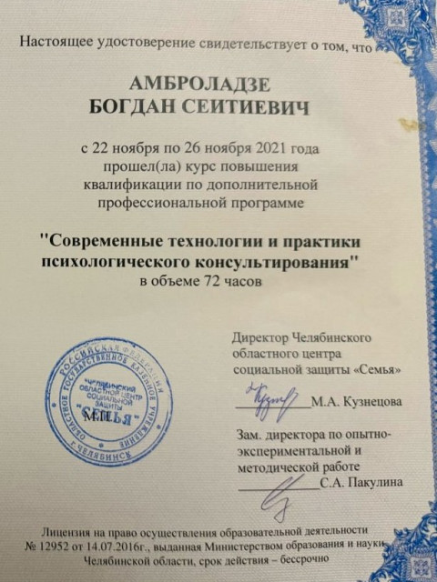 Наша деятельность лицензирована министерством обазования и науки по Челябинской области. По итогам обучения выдается свидетельство о дополнительном образовании или диплом о профессиональной переподготовке.